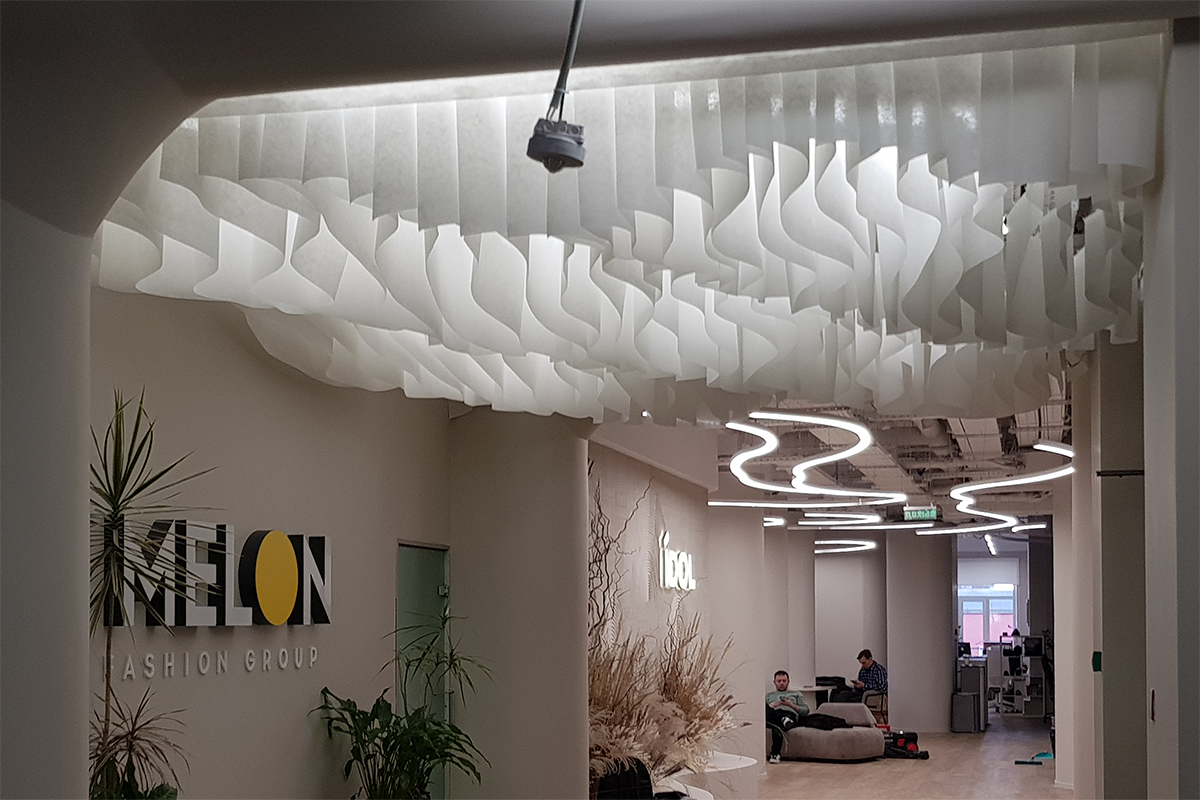 The Wave ceiling® system offers extensive opportunities for creating expressive and memorable spaces. With proper integration of engineering equipment and lighting, the ceiling becomes not only a decorative element but a tool that unites aesthetics and functionality.