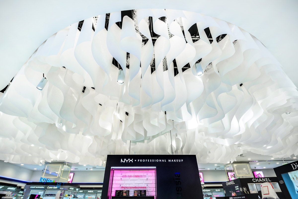 Ventilation ducts, electrical wiring, fan coils, and other engineering systems are an integral part of any public interior. It is important that they do not draw excessive attention to themselves but instead blend organically with the architectural concept. When installing our Wave or Drop ceiling® systems, they can be completely concealed or the visual focus can be shifted toward the ceiling design.